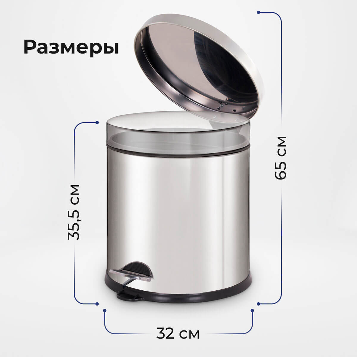 Рекомендуемый объем мешка - 30 литров. В стильном стальном цвете с зеркальным покрытием, размерами (320х320х355 мм), этот контейнер идеально впишется в интерьер любого помещения, придавая ему элегантный вид.